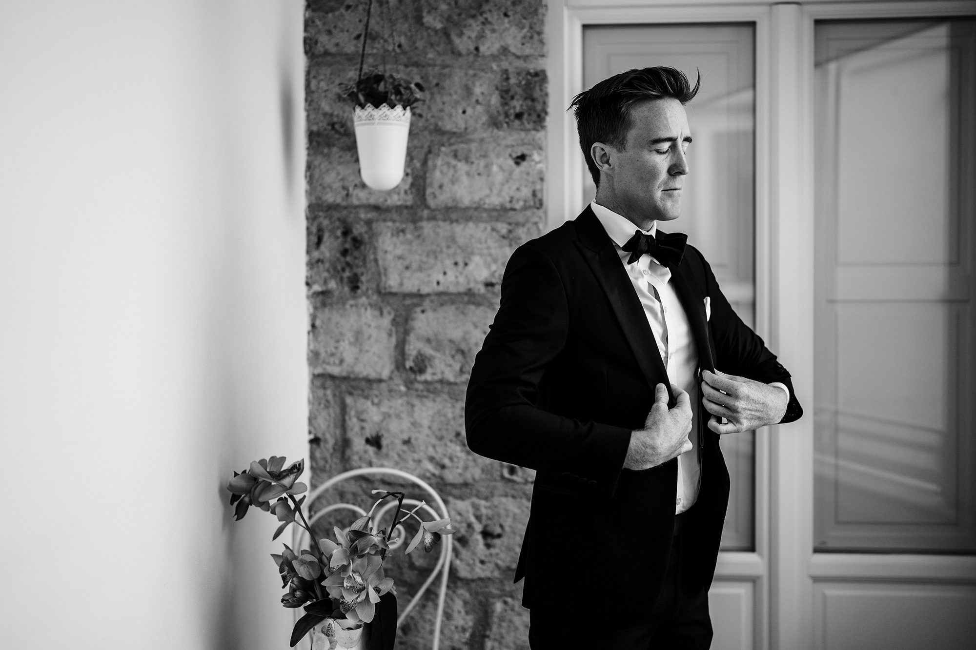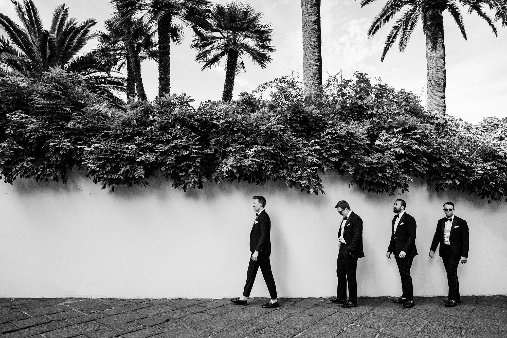 Matthew and Lauren got ready for their wedding day at separate locations in Sorrento. Lauren hung out with her bridesmaids and the mother of the bride at Villa Zagara. At the same time Matthew was with his groomsmen in the heart of Sorrento in an Italian apartment. Moving between the two wasn’t logistically difficult as I spend some time at the venue with Lauren before talking a short 10 minute walk to Matthew. Navigating through the narrow sorrento side streets was tricky but found the location easy enough. I then walked with Matthew and the groomsmen over to Zagara. Not before Lemon Cello shots all-round first!