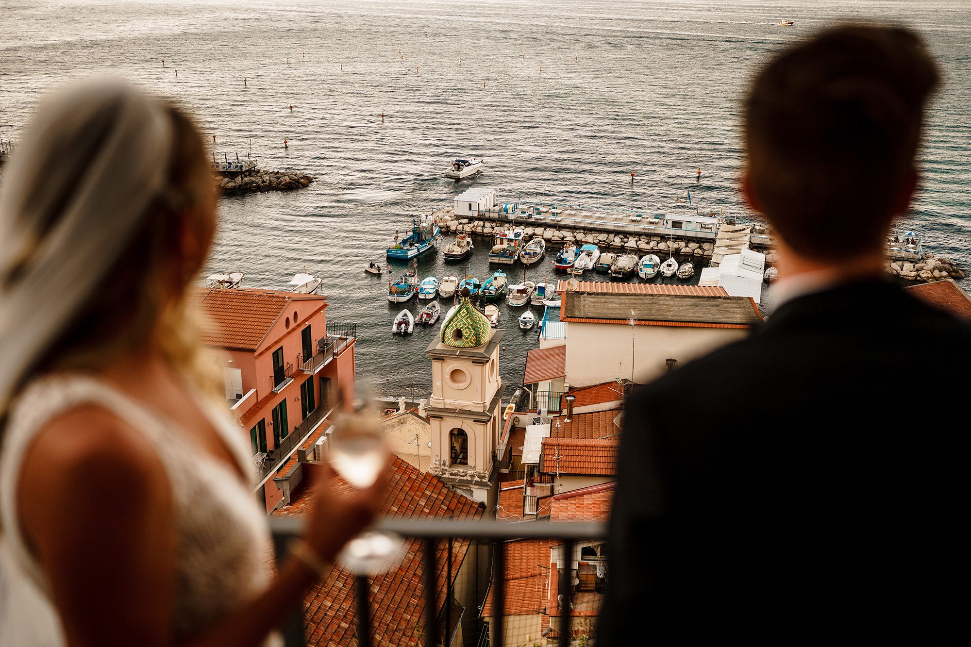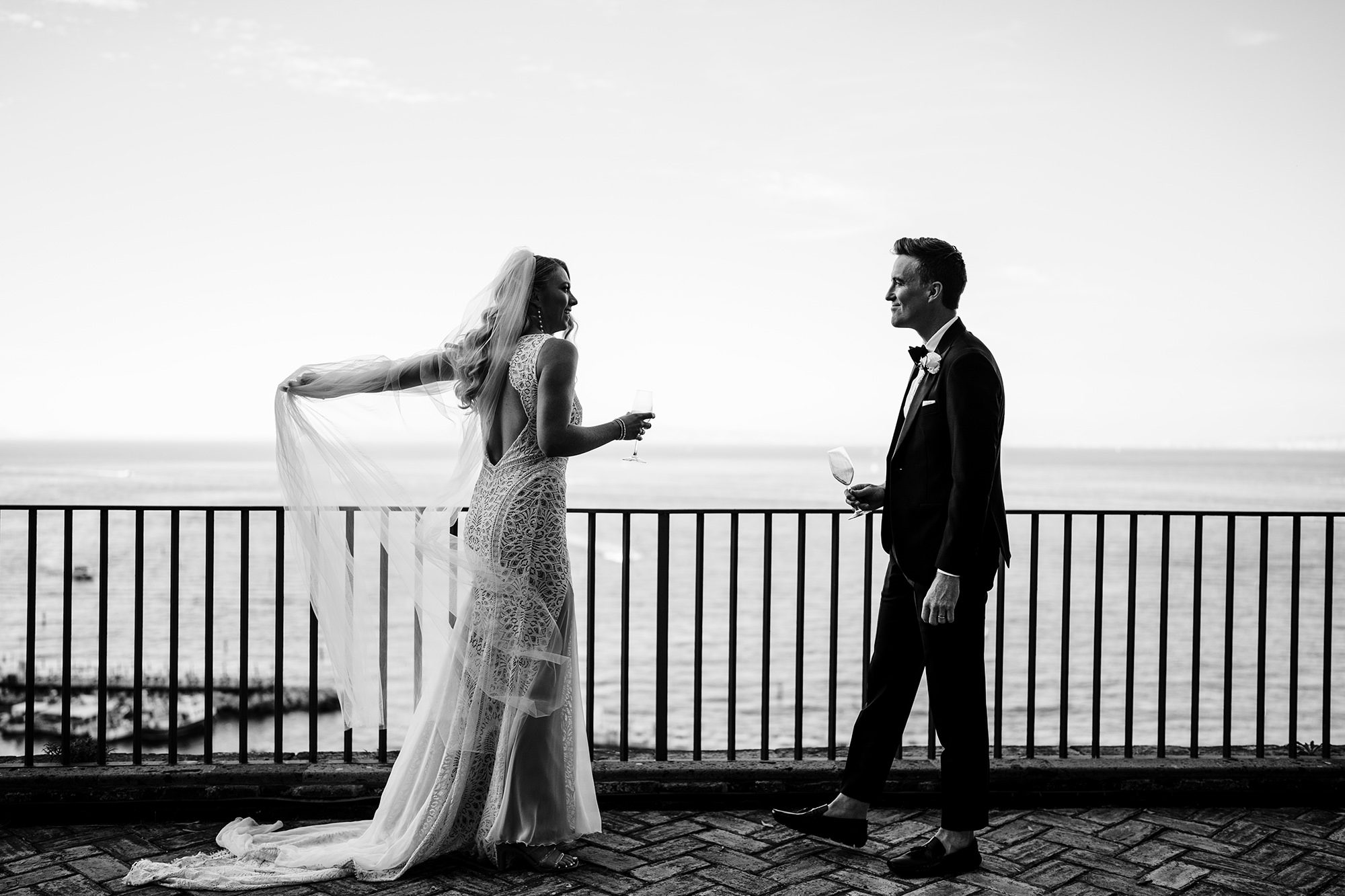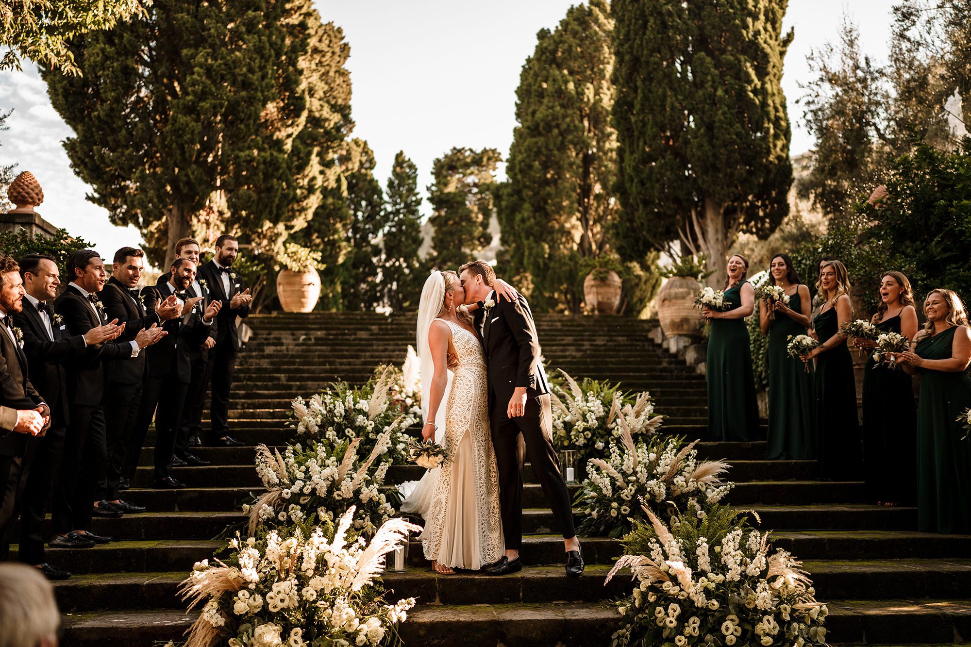 It was a really warm day on the day of the wedding, even though it was only October. Though being up high over the Amalfi Coast there was a gorgeous cool breeze coming in off the Mediterranean Sea. The people, the atmosphere, the location, the energy and the mood was all perfect for the next stage of this gorgeous wedding at Villa Zagara.  If you scroll back up you can see the steps that the ceremony took place on. With all of their favourite people around them Lauren and Matthew had. gorgeous wedding ceremony carried out by Carmela of CARMELA EVENTS. All the bridesmaids on one side of the steps and the groomsmen on the other side it was all just magical. The smiled, laughed and got emotional during it all and I’m really proud to have been there to capture it all.
