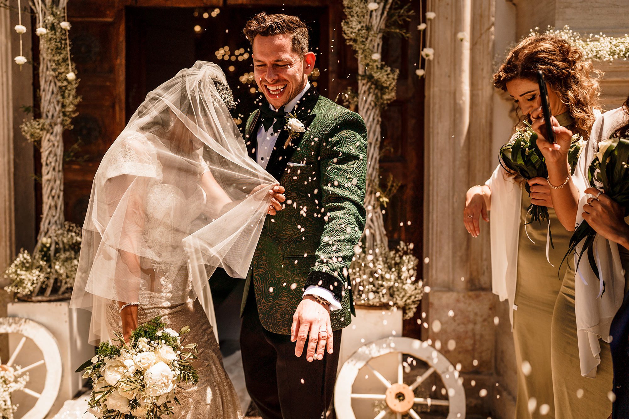 Confetti throw at Authentic Sicilian Wedding